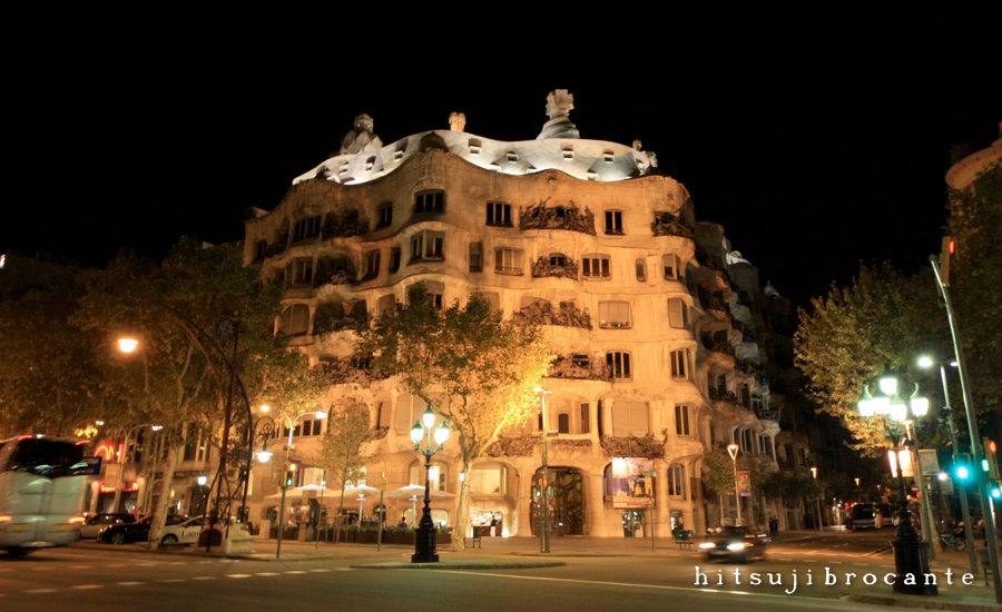ディアゴナル通りなどの大通りは車が多くいつも渋滞状態。渋滞を抜け、カサ・ミラ近くのホテルへチェックインした後は、夕方〜夜のバルセロナの街へ。ガウディ建築や港の夜景を見物。夜、ライトアップされたカサ・ミラは特に美しかったです。