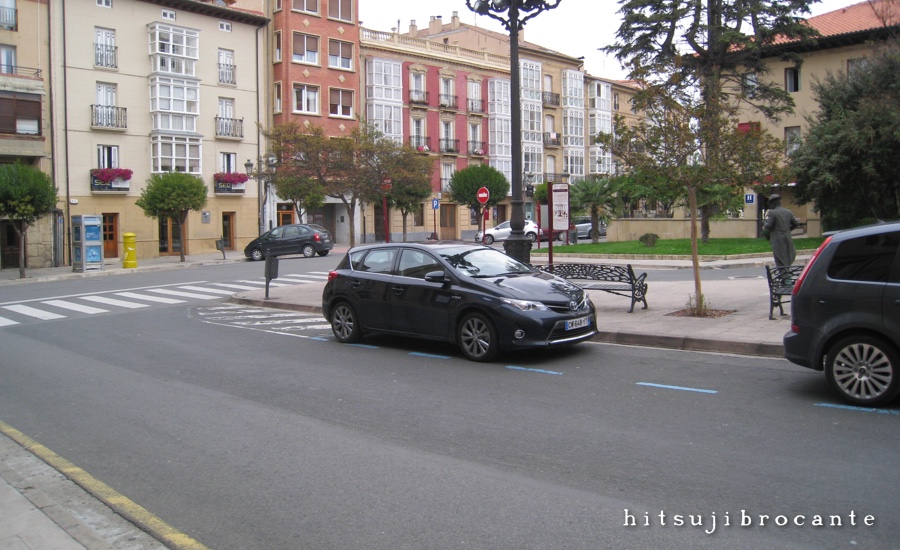 翌日、バルセロナに別れを告げ、ワインで有名なリオハ地方へ。次の目的地はアーロという街に。修道院を改装したホテルがよさげだったので予約。約550kmとかなりの長距離ドライブとなりました。途中、サービスエリアで休憩や給油をしつつ、6時間後に、無事アーロに到着。アーロは歴史を感じさせる街並みであるとともに、ワインの街であることがわかるモチーフが楽しめました。