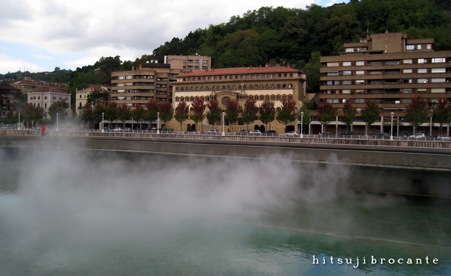 美術館沿いの川に向けて、時々、霧が噴出します。