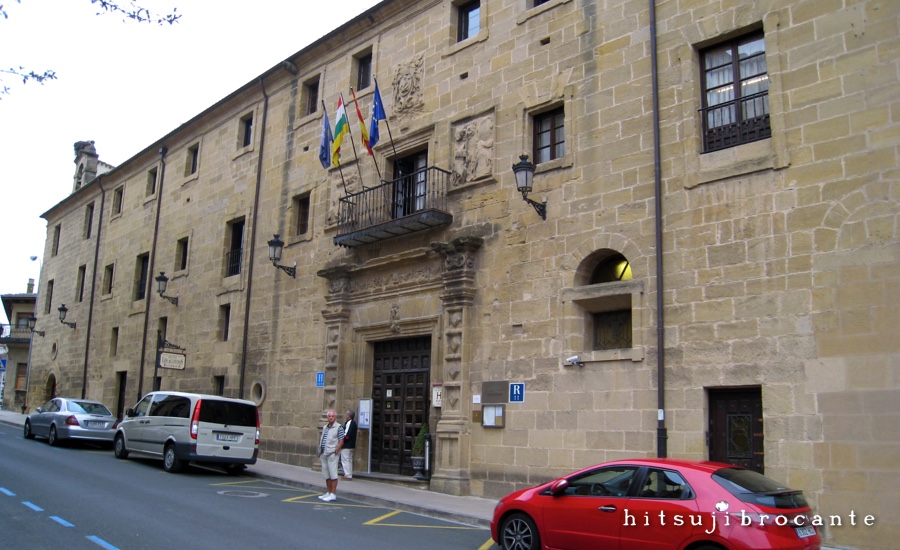 翌日、バルセロナに別れを告げ、ワインで有名なリオハ地方へ。次の目的地はアーロという街に。修道院を改装したホテルがよさげだったので予約。約550kmとかなりの長距離ドライブとなりました。途中、サービスエリアで休憩や給油をしつつ、6時間後に、無事アーロに到着。アーロは歴史を感じさせる街並みであるとともに、ワインの街であることがわかるモチーフが楽しめました。